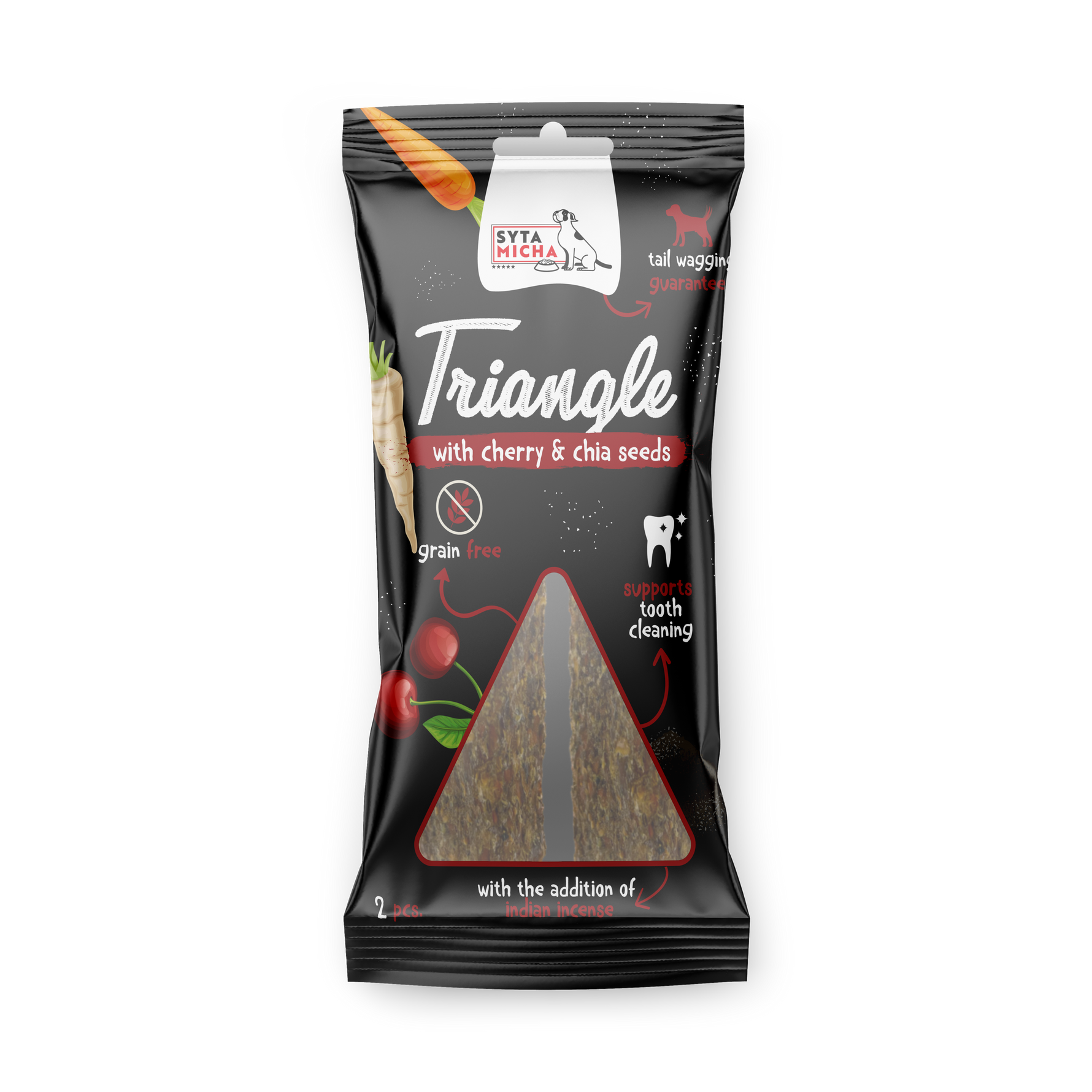 Se è così, abbiamo la soluzione ideale per te – Triangolo con Ciliegia per Cane di Syta Micha. Per karma complementare per cani adulti e cuccioli, che sicuramente soddisferà il tuo amico a quattro zampe. Si adatta perfettamente come snack sano per cani tra i pasti o premio durante l'allenamento.