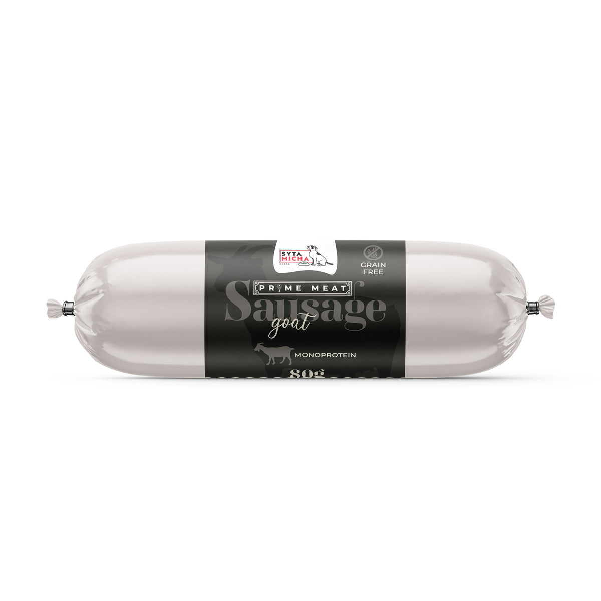 Syta Micha presenta la nuova linea Prime Meat – eccezionali salsicce monoproteiche per cani che sono deliziosi snack per l'addestramento. La salsiccia Prime Meat con capra da 80g è una combinazione di 97% di carne muscolare di capra e 3% di tapioca senza glutine. Un'ottima proposta di snack per l'addestramento per cani con un sistema digestivo delicato o che seguono una dieta di eliminazione.