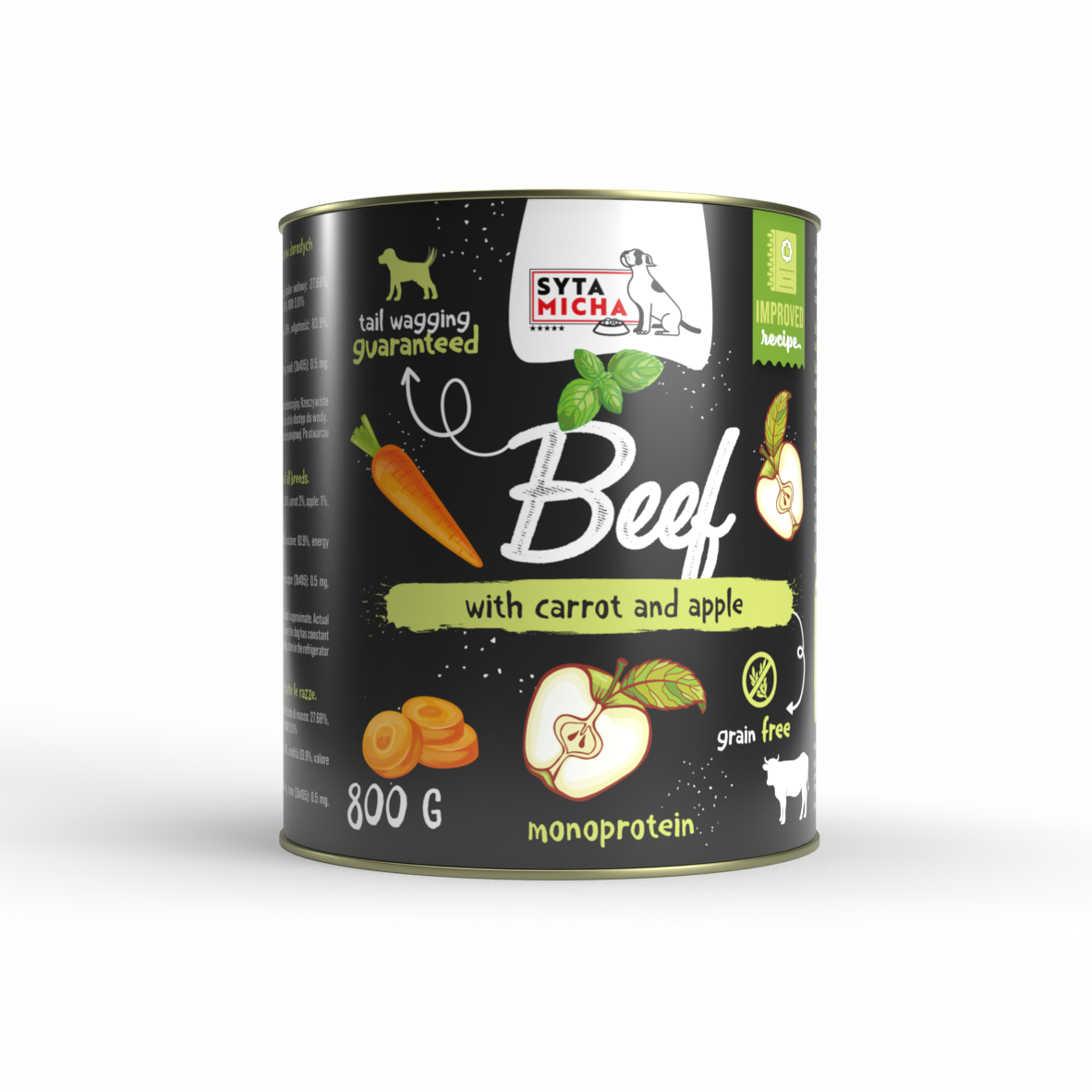 Найкращий вологий корм для собаки — це Syta Micha яловичина з морквою, яблуком і базиліком. Це більше, ніж багатство вітамінів і мінералів. Це передусім забезпечення правильного функціонування організму собаки на довгі роки.